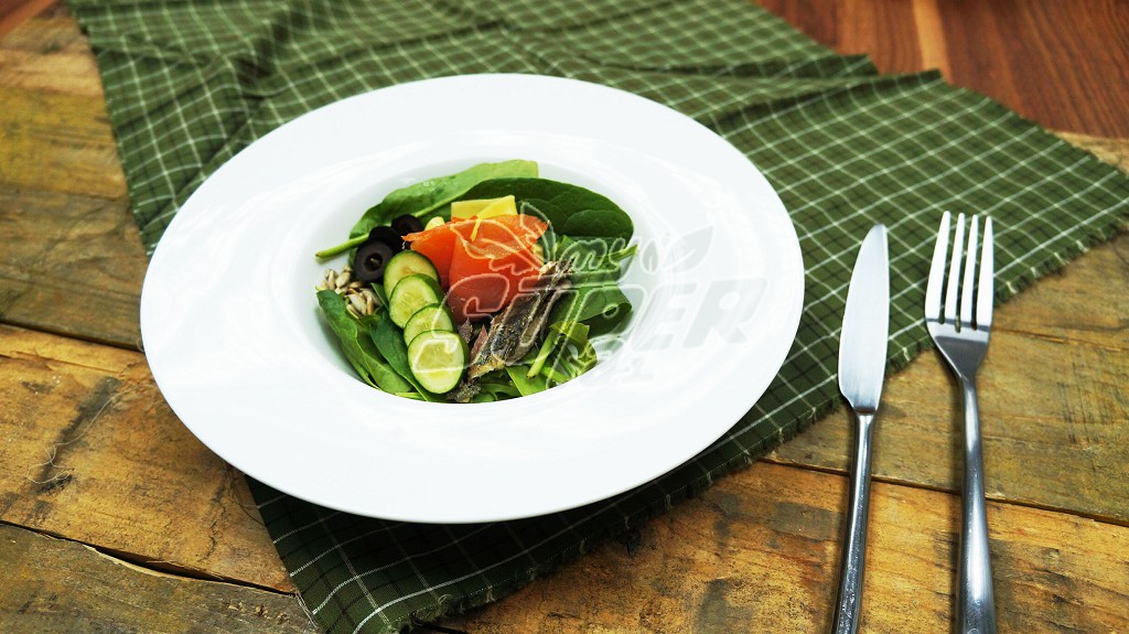 Salmon is usually appears in salad dishes but to include sardines is a new combination. Both fishes contain high nutrition value that include omega and high protein level. It some with sunflower seed and self-made Balsamic Vinaigrette sauce is another highlight of this salad.