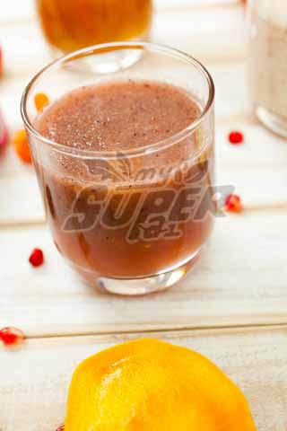 An anti-oxidize juice with a mixture of berries and linseed. Tasteful and healthy for your body.